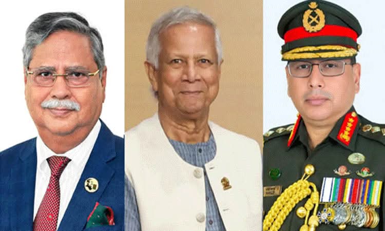 রাষ্ট্রপতি মো. সাহাবুদ্দিন ও প্রধান উপদেষ্টা ড. মুহাম্মদ ইউনূসের সঙ্গে সাক্ষাৎ করেছেন সেনাবাহিনী প্রধান জেনারেল ওয়াকার-উজ-জামান। সোমবার (১ সেপ্টেম্বর) সকালে প্রধান উপদেষ্টার সঙ্গে তার বাসভবন যমুনায় সাক্ষাৎ করেন সেনাপ্রধান। পরে সেখান থেকে বেরিয়ে বঙ্গভবনে গিয়ে রাষ্ট্রপতির সঙ্গে সাক্ষাৎ করেন। এর আগে রোববার সকালে প্রধান বিচারপতি ড. সৈয়দ রেফাত আহমেদের সঙ্গে সাক্ষাৎ করেন সেনাপ্রধান। এদিকে ২১ আগস্ট সরকারি সফরে চীনে যান সেনাবাহিনী প্রধান। বুধবার রাতে তিনি দেশে ফেরেন। আন্তঃবাহিনী জনসংযোগ পরিদপ্তর (আইএসপিআর) জানায়, সফরে সেনাবাহিনী প্রধান জেনারেল ওয়াকার-উজ-জামান পিপলস লিবারেশন আর্মির (পিএলএ) স্থলবাহিনীর পলিটিক্যাল কমিসার জেনারেল চেন হুইসহ চীনের উচ্চপদস্থ সামরিক ও বেসামরিক কর্মকর্তাদের সঙ্গে সৌজন্য সাক্ষাৎ করেন। এ সময় দ্বিপক্ষীয় স্বার্থসংশ্লিষ্ট বিভিন্ন বিষয়সহ রোহিঙ্গা প্রত্যাবর্তনে সহায়তা নিয়ে আলোচনা করেন। বিজ্ঞপ্তিতে আইএসপিআরের পক্ষ থেকে বলা হয়, সেনাবাহিনী প্রধান ২২ আগস্ট চীনের পিএলএ সদরদপ্তরে পৌঁছালে তাকে ‘গার্ড অব অনার’ দেওয়া হয়। পরবর্তী সময়ে তিনি পিএলএর স্থলবাহিনীর পলিটিক্যাল কমিসার জেনারেল চেন হুইর সঙ্গে সৌজন্য সাক্ষাৎ করেন। সাক্ষাতে তারা দু-দেশের মধ্যে কৌশলগত সহযোগিতা, জনগণের মধ্যে পারস্পরিক যোগাযোগ, জোরপূর্বক বাস্তুচ্যুত মিয়ানমারের নাগরিকদের প্রত্যাবর্তনে সহায়তা বিষয়ে আলোচনা করেন। এ ছাড়া বাংলাদেশের সামরিক শিল্পের উন্নতিতে চীনের প্রয়োজনীয় সহায়তা দেওয়ার বিষয় নিয়েও আলোচনা হয়। অন্যদিকে রোববার দেশের প্রধান তিনটি দল বিএনপি, জামায়াত ও এনসিপির সঙ্গে বৈঠক করেন প্রধান উপদেষ্টা। ওই বৈঠকে প্রধান উপদেষ্টা বলেন, আগামী ফেব্রুয়ারির মধ্যেই জাতীয় নির্বাচন অনুষ্ঠিত হবে। এ ছাড়া আগামীকাল মঙ্গলবার (০২ সেপ্টেম্বর) আরও ৭টি রাজনৈতিক দলের সঙ্গে বৈঠক করবেন প্রধান উপদেষ্টা। সোমবার প্রধান উপদেষ্টার প্রেস উইং থেকে জানানো হয়েছে, আরও সাতটি রাজনৈতিক দলের সঙ্গে বৈঠক করবেন অন্তর্বর্তী সরকারের প্রধান উপদেষ্টা ড. মুহাম্মদ ইউনূস। মঙ্গলবার বিকেল ৫টায় রাষ্ট্রীয় অতিথি ভবন যমুনায় এই বৈঠক অনুষ্ঠিত হবে।।