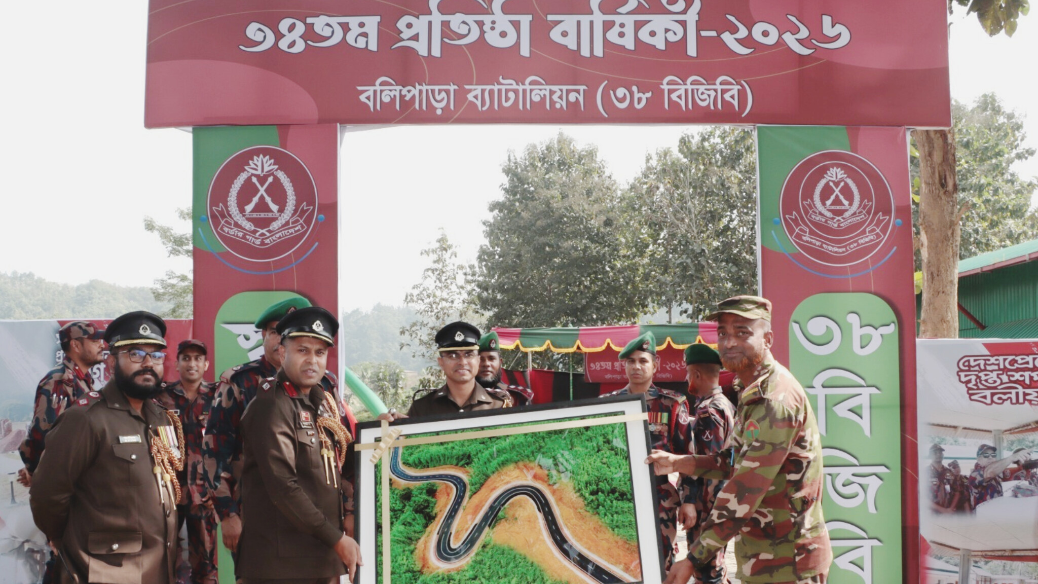 ব্যাপক উত্সাহ ও উদ্দীপনার মধ্যদিয়ে বলিপাড়া ব্যাটালিয়ন ৩৮ বিজিবি’র ৩৪তম প্রতিষ্ঠা বার্ষিকী উদযাপন করা হয়েছে। যথাযোগ্য মর্যাদা ও উৎসবমুখর পরিবেশে এ প্রতিষ্ঠা বার্ষিকী উদযাপিত হয়েছে। ৩৮ বিজিবি ব্যাটালিয়নটি ১৫ জানুয়ারি ১৯৯২ সালে ঢাকা সেক্টরের অধীনে প্রতিষ্ঠা লাভ করে। প্রতিষ্ঠালগ্ন থেকে দেশের বিভিন্ন গুরুত্বপূর্ণ এলাকায় সীমান্ত নিরাপত্তা ও অভ্যন্তরীণ নিরাপত্তা রক্ষার দায়িত্ব পালন শেষে গত ১৩ মার্চ ২০১৮ হতে অদ্যাবধি পর্যন্ত পার্বত্য অঞ্চল বলিপাড়ায় সুনামের সাথে কর্তব্যরত রয়েছে। দুর্গম পার্বত্য অঞ্চলের সীমান্ত রক্ষা, পার্বত্য চট্টগ্রামে শান্তি ও স্থিতিশীলতা প্রতিষ্ঠা, পাহাড়ী ও বাঙালি জনগোষ্ঠীর মধ্যে সম্প্রীতি ও সম্পর্ক উন্নয়ন, চোরাচালান দমন, অপারেশন উত্তরণ-এর আওতায় কাউন্টার ইনসার্জেন্সি অপারেশন (সিআইও), অভ্যন্তরীণ নিরাপত্তা কর্তব্য পালন, অবৈধ অস্ত্র উদ্ধার এবং সন্ত্রাস দমনে বলিপাড়া ব্যাটালিয়ন (৩৮ বিজিবি) ইতিমধ্যে গৌরবোজ্জ্বল দৃষ্টান্ত স্থাপন করে চলেছে। শত ব্যস্ততার মাঝেও এ দিন ৩৪তম প্রতিষ্ঠা বার্ষিকী উপলক্ষে দিনব্যাপী বিভিন্ন কর্মসূচির আয়োজন করা হয়। কর্মসূচির মধ্যে বাদ ফজর মিলাদ ও বিশেষ দোয়া মাহফিল, আনুষ্ঠানিকভাবে রেজিমেন্টাল পতাকা উত্তোলন, অধিনায়কের বিশেষ দরবার, প্রীতিভোজ এবং ব্যাটালিয়ন প্রশিক্ষণ মাঠে প্রীতি ফুটবল ম্যাচ উল্লেখযোগ্য। আয়োজিত প্রীতিভোজে প্রধান অতিথি হিসেবে উপস্থিত ছিলেন বিএ-৫৬৫৮ কর্নেল মুহাম্মদ রুবায়াত জামিল, বিএসপি, সেক্টর কমান্ডার, সেক্টর সদর দপ্তর, বান্দরবান এবং অধিনায়ক, আলীকদম ব্যাটালিয়ন (৫৭ বিজিবি)। এছাড়াও আমন্ত্রিত সামরিক ও বেসামরিক অতিথিবৃন্দ, অত্র ব্যাটালিয়নের অধিনায়ক, সকল অফিসার, জেসিও, অন্যান্য পদবীর সৈনিক এবং অসামরিক কর্মচারীবৃন্দ অনুষ্ঠানে অংশগ্রহণ করেন। প্রতিষ্ঠা বার্ষিকী উপলক্ষে আয়োজিত অনুষ্ঠানে প্রধান অতিথি সকলের সাথে শুভেচ্ছা বিনিময় করেন এবং কেক কাটার মাধ্যমে দিবসটি উদযাপন করা হয়। বলিপাড়া ব্যাটালিয়ন ৩৮ বিজিবি’র বিপিএমএস পরিচালক ও অধিনায়ক লে. কর্নেল মোঃ ইয়াসির আরাফাত হোসেন আলোকিত চকরিয়া ডট কম কে জানান, আনন্দঘন ও সৌহার্দ্যপূর্ণ পরিবেশে অনুষ্ঠিত এবারের আয়োজন ব্যাটালিয়নের সকল সদস্যেদের মাঝে নতুন করে ব্যাপক উত্সাহ উদ্দীপনা ও অনুপ্রেরণার সৃষ্টি করে##